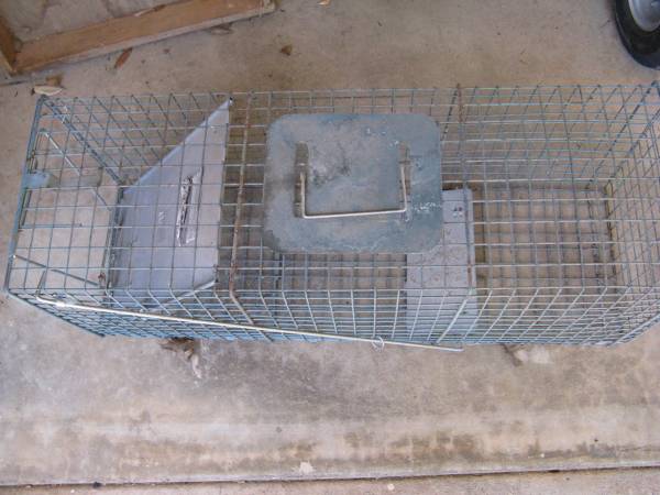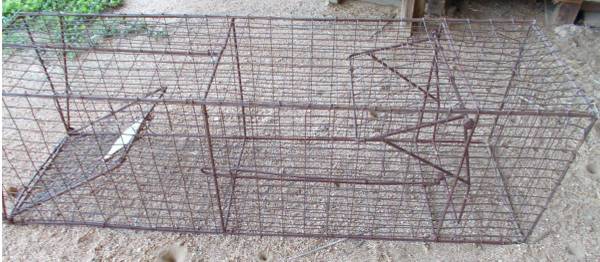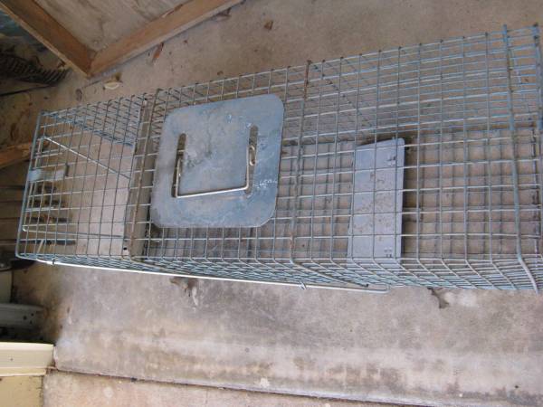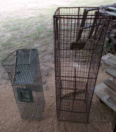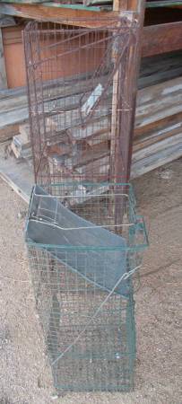 2 Large Animal Traps, large size - CAN BE BOUGHT INDIVIDUALLY 1. LARGE SIZE ANIMAL TRAP - $20 32 1/4" LONG X 12 1/4" WIDE X 12 1/4" TALL THE OPENINGS ARE 1" X 1" APPEARS TO BE IN GOOD WORKING...