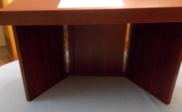 Portable Wood Lectern (Reading Desk) designed to be placed on table or desk. Fully portable. Two pieces with folding base. Piano hinges stabilize base. Perfect for school room or church function....