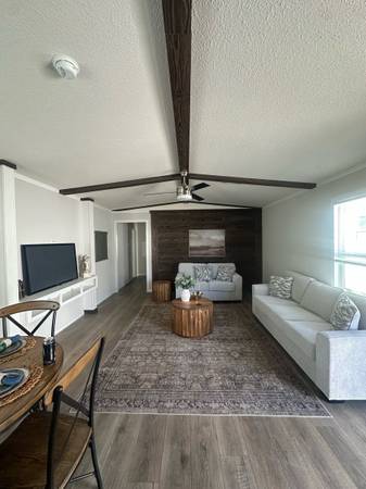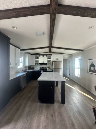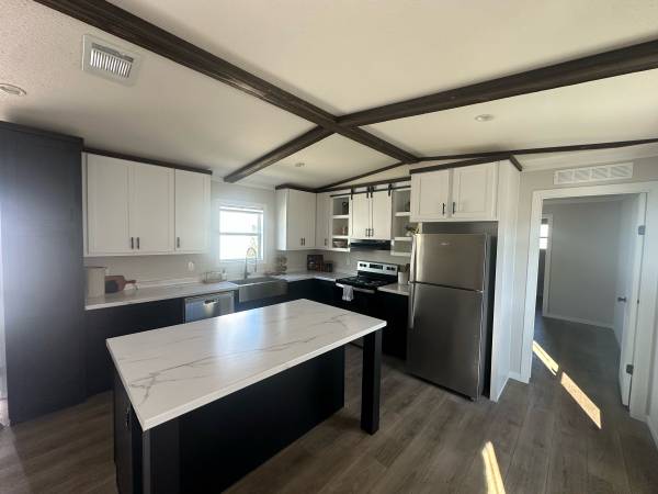 Brand new 3 bed 2 bath with open concept kitchen, custom cabinets, large wood accented living room, comes with appliances shown and central ac (roof mounted air vents)