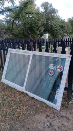 Sliding glass serving window, used. Approximately 6' wide and 3' tall. See photos for exact dimensions with and without frame. No damage to glass. Cash only.