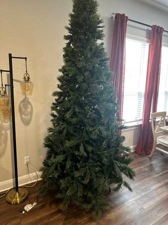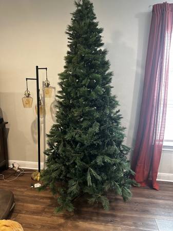 9 foot tree for sale. Tree is in really good condition, was really well taken care off. The lights on the tree don’t work anymore, only some light up.