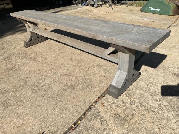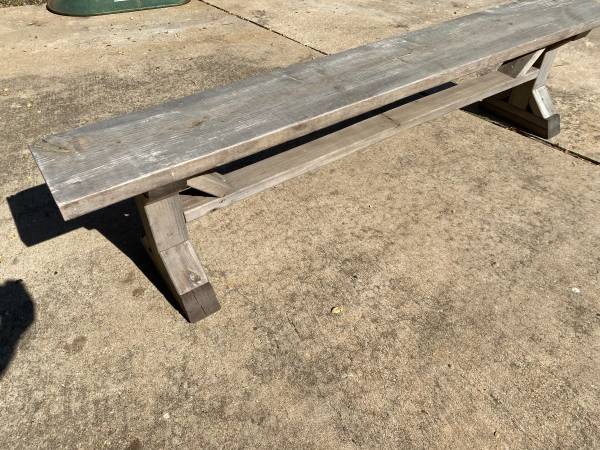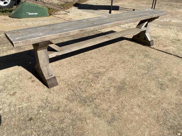 FOR SALE: Large Wood Bench Handmade Sturdy Outdoor Patio Pool Dining 79" Long 18" Tall 11" Wide $100