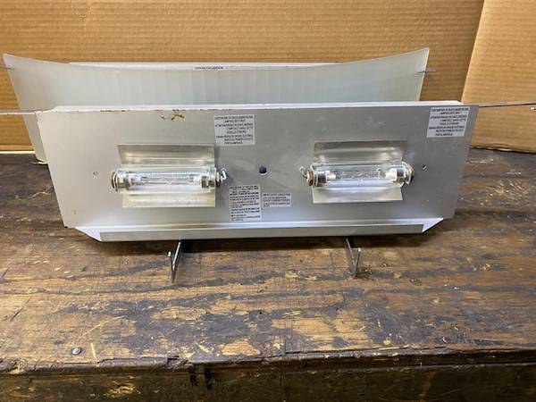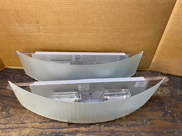 FOR SALE: TWO Bathroom Vanity Over the Sink Lights Frosted Glass 24" Long 6-1/2" Tall 5" Wide 2 Halogen Bulbs $20 for the Pair