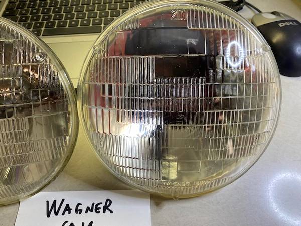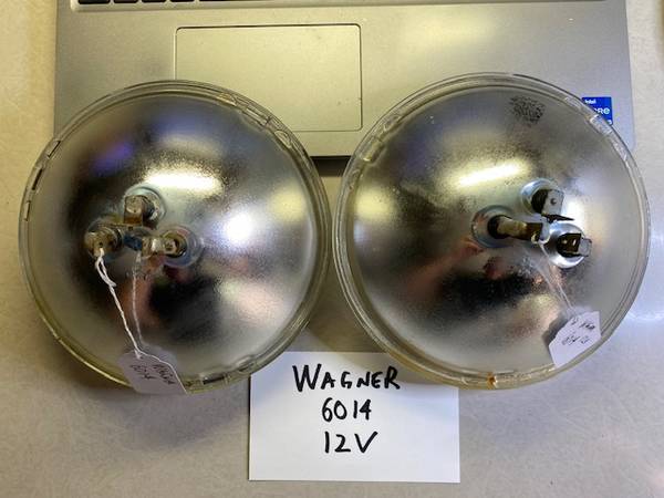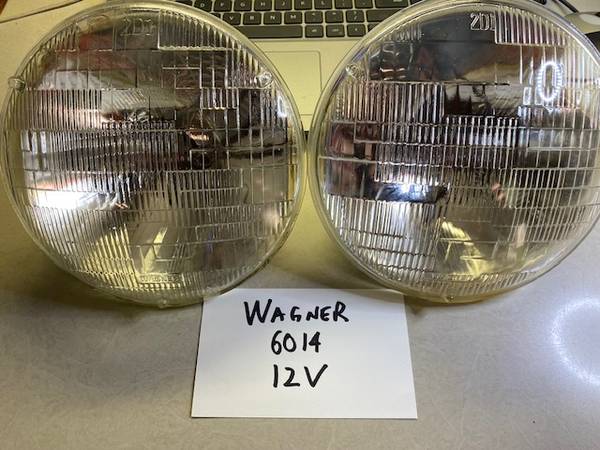 FOR SALE: TWO Used Tested Wagner 12 Volt 7” Sealed Beam Headlights Headlamps 12 Volt Wagner PART NO. 6014 These have been tested, Hi and Lo Beams good. $30