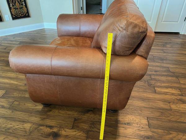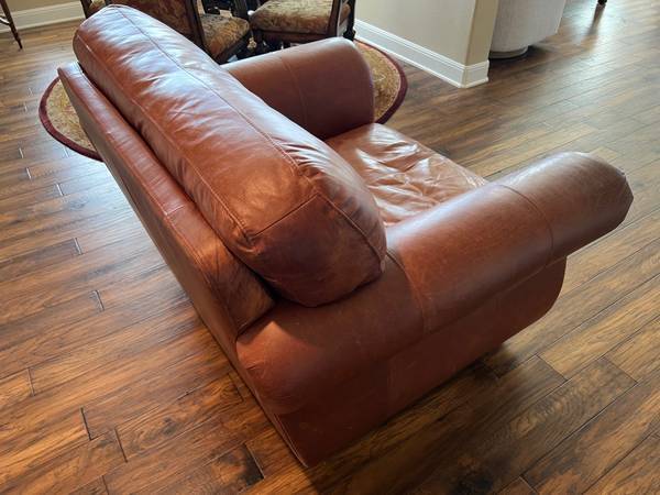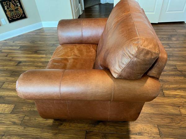 Excellent condition oversized accent chair genuine leather. Cognac color. Smoke/animal free home. Local cash pickup only. Please text at 469 274 093 four.