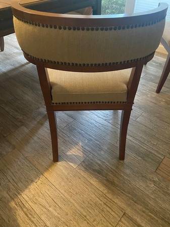 41x84x40h antique wood dining table great condition 4 nail head 4 hands dining chairs, great condition Overall, approx. 24"W x 23.5"D x 32"T Seat, 22.25"W x 19.25"D x 19.75"T 4 coordinating dining...