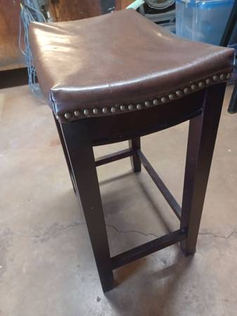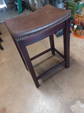 Bar stool/counter-height with padded leather seat. Good condition. $40.00