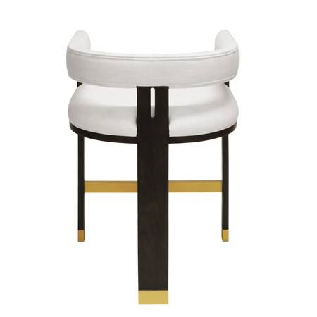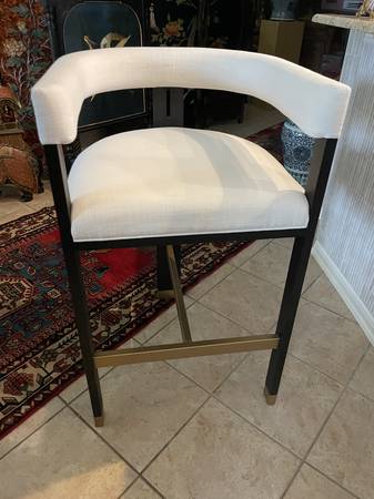 Perfectly tailored in crisp white linen upholstery, the barrel back Connery barstools exude mid-century mod style and attitude.