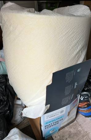 Here we have a king-size Tempur-Pedic 3” Cooling Memory Foam Serenity mattress topper. From the looks of the box this appears to be a customer return. It seems to be in great condition but is returnable within 24 hours for a 100% refund if it doesn’t meet expectations, just return it in the same condition as when received within that 24-hour window.