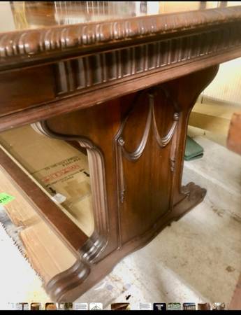 writing table desk / library table Measures about 34 deep by about 71 long and about 30.5 high - 2 drawers on one side - $380 Antiquecandy