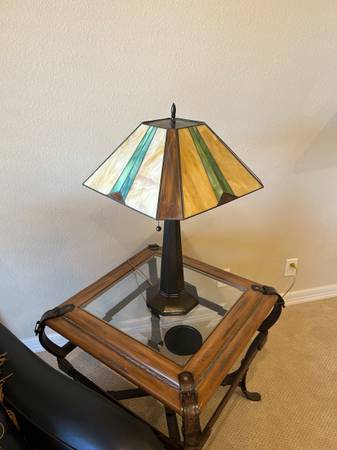 Mission Style Lamp with Stained Glass Shade - furniture - by owner -...