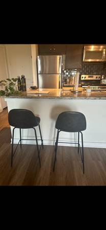 This pair is in perfect condition. They were probably only sat on a couple times before I inherited a larger group of stools that works better for my island. They're actually surprisingly comfortable for the size. Currently selling on the AllModern website for $299. Asking $100 (for the pair). The actual link for the item is below, and the height (to the base of the seat) is the 23.75" counter height version.