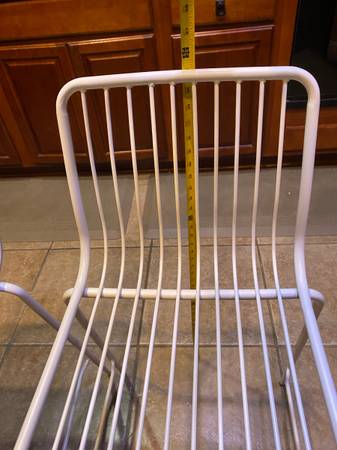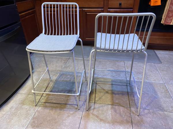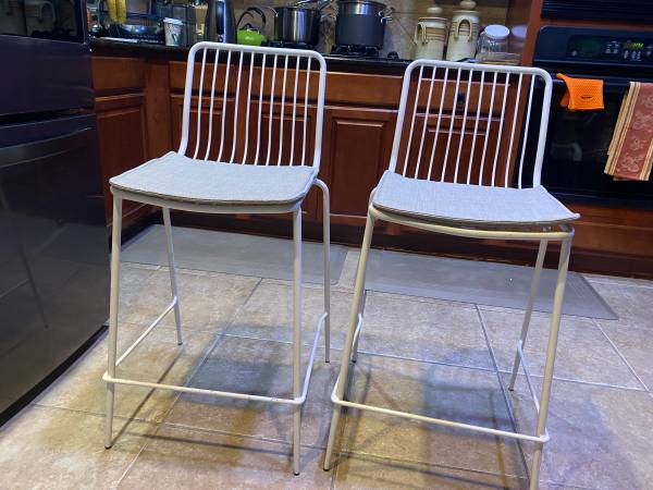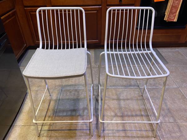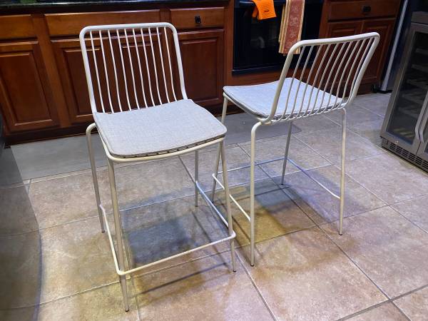 Two white metal counter stool with thin seat pad in excellent condition. Similar chairs/ bar stools sell for about $540 for each online. See the websites below for more information:...