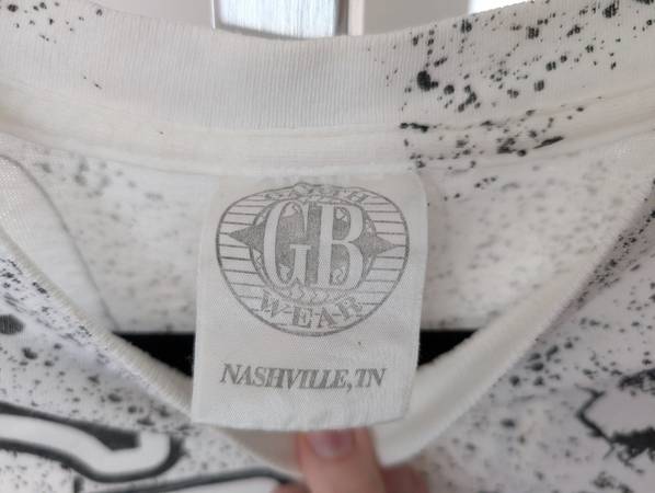 Available. Garth Brooks brand "Garth Wear GB" vintage all over t shirt. Tag is one size fits all. 100% Cotton. Made in USA. Cash or Venmo only.