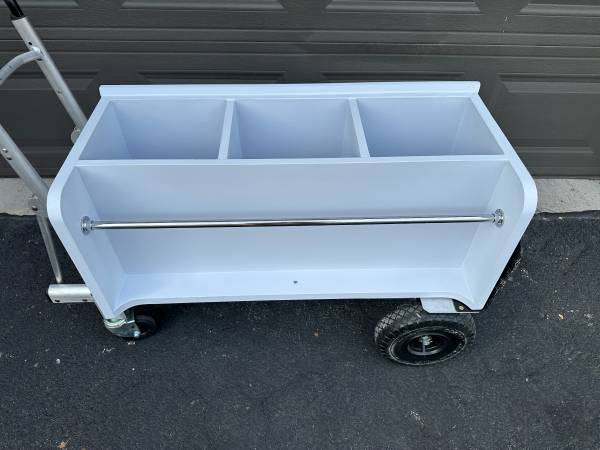 Wall Shelf with Closet bar Solid wood Lavender body with white wood detailing and silver bar 35" x 16" x 14.25" (35.75" at crown) Refinished/Refurbished with high-quality furniture paint CLEANABLE...