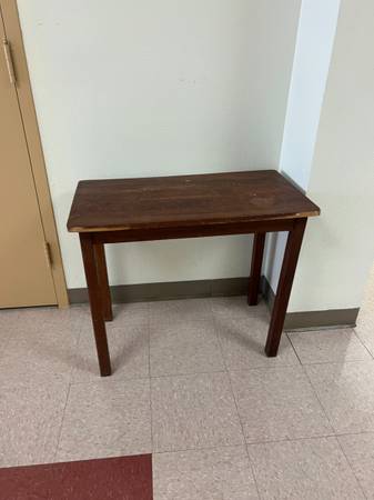 This table is 17" x 32" x 26" tall. It is sturdy and in good shape. It has a shelf that pulls out. This table is surplus property and is being sold to raise scholarship money for the College of Arts...
