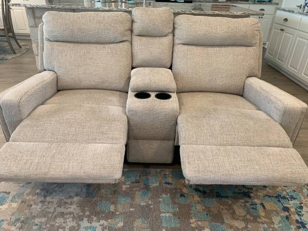 Two Nadia II manual recliners and one Nadia II manual love seat recliner. $500.00 for all three pieces. Recliners 36" W x 37" D x 40" H Love seat 73" W x 37" D x 40" H