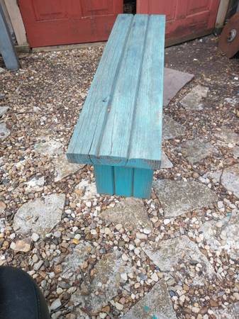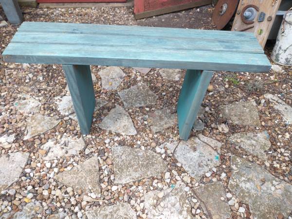 Rustic Blue Solid Pine Wood Garden Bench / Table 9 x 19 ^ 39" long CALLS ONLY chair, seat, seating, bar, stool, barstool, antique, vintage, relic, old, rustic, industrial, machine age, cabin,...