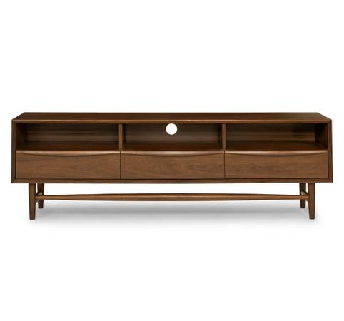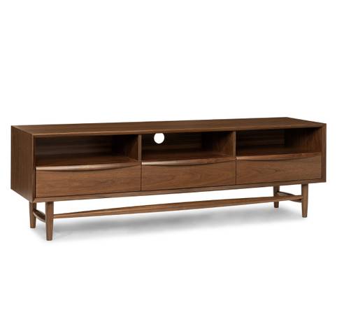 Did you hear that? Of course you didn't — designed with soft-close drawers, the very understated Lenia Media Unit makes tidying up fuss-free and verrry quiet. Plus, its discreet opening for cord management keeps wires organized so you can focus on the important things on display up top. Ah the sweet sound of organization.