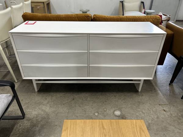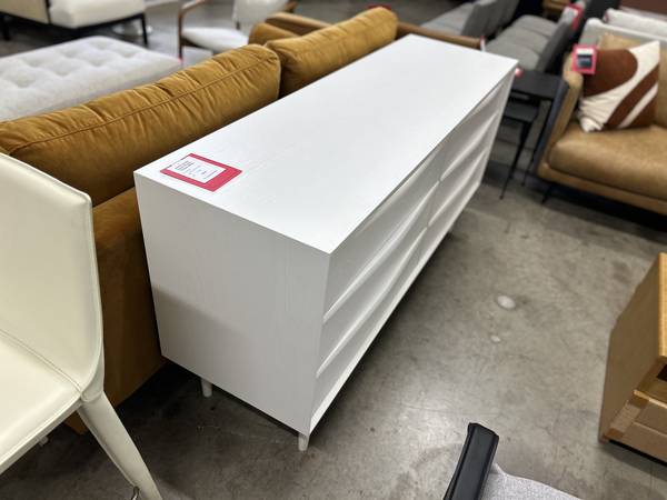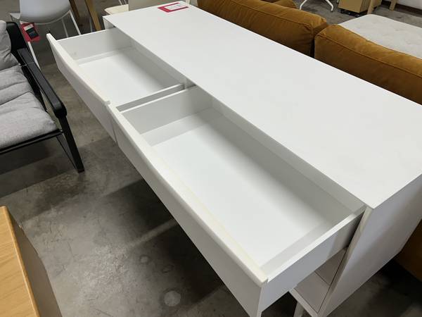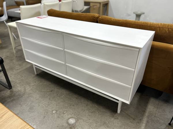 Condition: new customer return, with a ding on the bottom/right/back corner. Slight yellowing on the inner edge of drawers. (See photos)