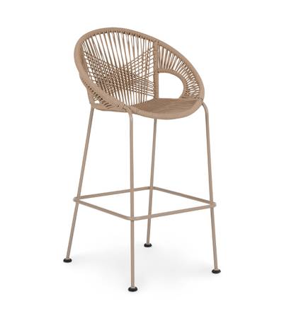 A strappy summer staple. Sturdy and intricate, our Kasiko Bar Stool features a rope seat woven over a powder coated steel frame making it the perfect patio perch. Sit back, relax, and enjoy a warm summer breeze from all angles.