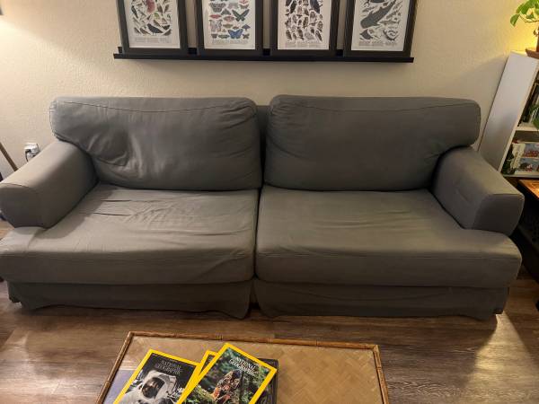 Free sofa 8 ft wide by 3.5 ft deep We are getting a new sofa and have no use for this one.