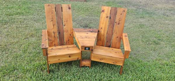 Comfortable seating for 2, complete with designer corner table and lower magazine rack. With its form fitting seat, contoured back. Rot resistant untreated western red cedar Stain-Seal