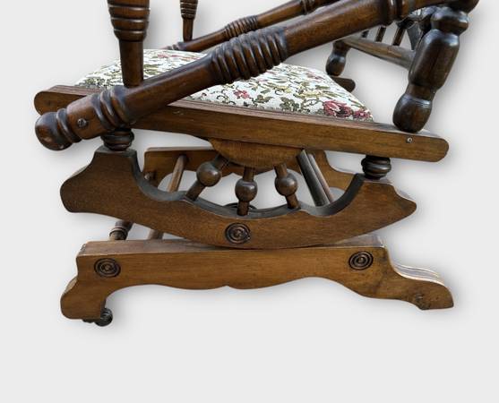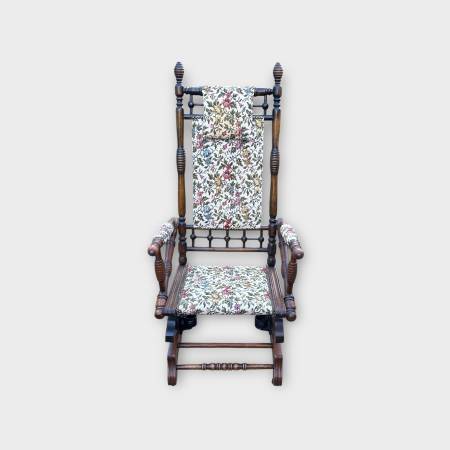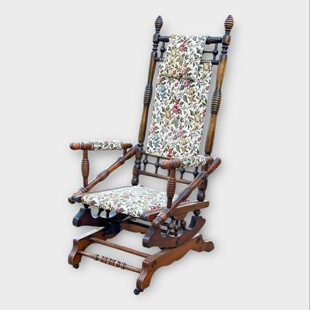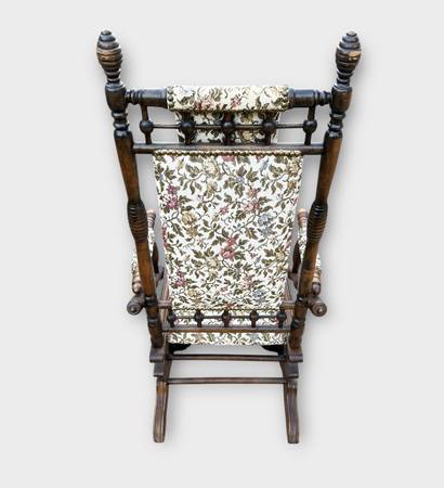 This rocker is in amazing condition. Late 19th century, either Victorian or just after Victorian era. The only flaw worth mentioning is the head rest pillow needs to be cleaned a bit.