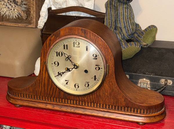 In excellent condition with no damage. This antique mantle clock has been modernized with a battery operated clock. Takes a C battery. Comes with the instructions for the clock.