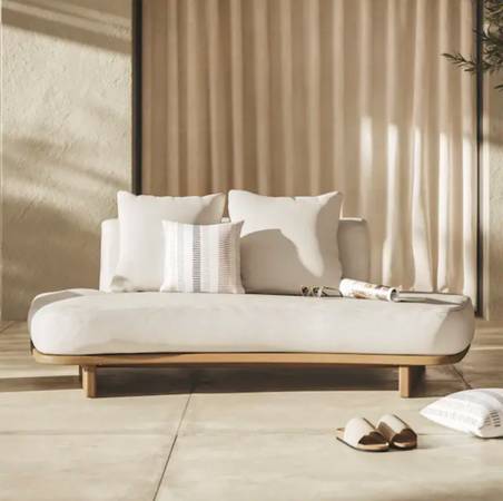 Don’t panic - it’s organic. In shape. But good design is very beneficial to your health. The plinth base has rounded corner details and is built from solid eucalyptus, meaning your sofa is sturdy for sitting/stretching out/chilling, but lightweight for moving. Upholstered with UV- and water-resistant fabric, the Daphne is stain-resistant and will look fabulous for years. Which reminds us to remind you — wear sunscreen!