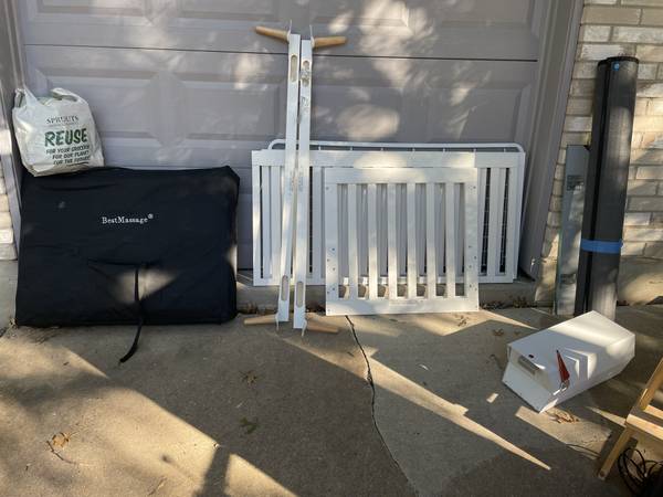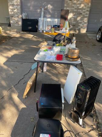 Garage Sale 10/12 from 9-2 Lots of baby/toddler clothes (newborn-3T) Women’s clothes Maternity clothes Lamps Shoe rack Kitchen items Puppy pen Crib Massage table with sheets Heater Printer And much...
