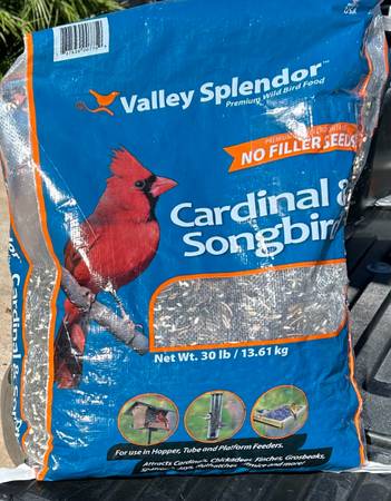 Here we have a 30 pound bag of Valley Splendor Cardinal and Songbird food.