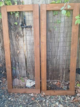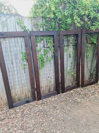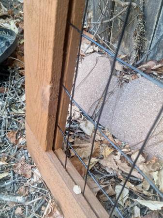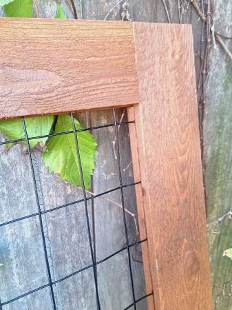 5 ft tall 2ft wide cedar frame that has been stained nailed and screwed together. Black metal grid inside. $50.00 each