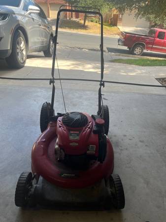 5hp craftsman Briggs and Stratton lawnmower. Starts easy runs good. Bought an electric mower due to my age can’t push it anymore. Been a good mower if interested call 512573837four.