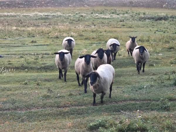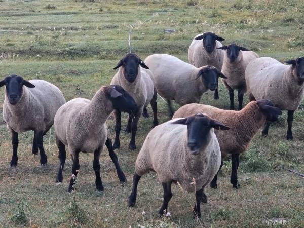 6 are 7-8 yr old eyes 1 is a yearling ewe 1 is a 7-8 yr old ram 2 lambs . 1 ewe 1 ram