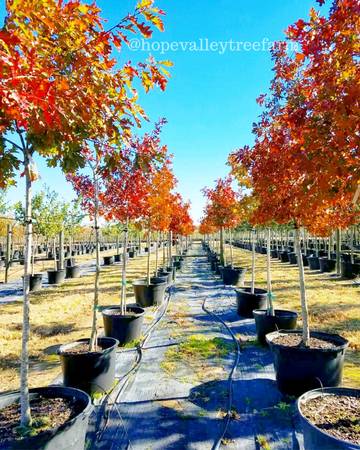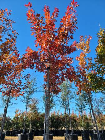 Our Shumard Red Oaks are showstoppers! Available in 30, 45, and 95 gallon. The Shumard variety is known to thrive in Central Texas. It produces a dense wide canopy for maximum shade and beauty. Red Oaks stay green and full until late fall, when the leaves change color to vibrant shades of red and orange. They go dormant in the winter months.