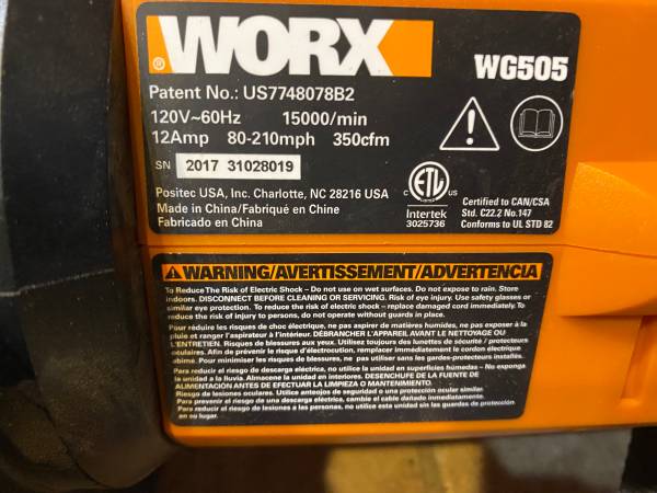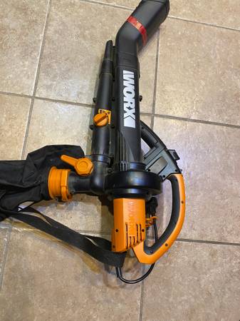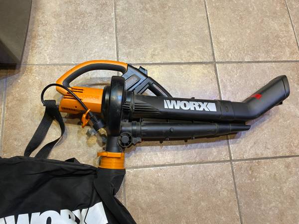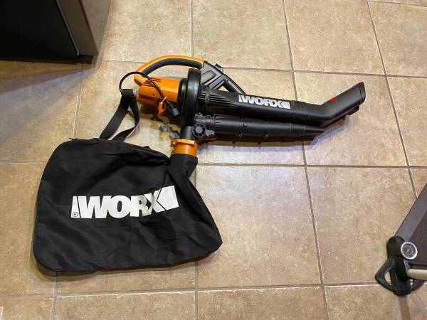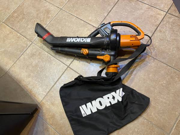 WORX WG505 Trivac 12 Amp 3-in-1 Electric Leaf Blower/Leaf Vacuum/Mulcher, Metal Impeller for Fine Mulching with a bag.
