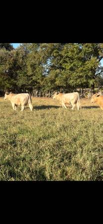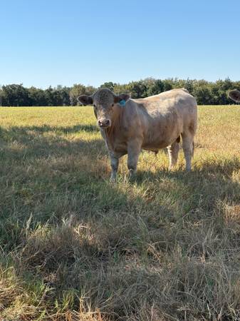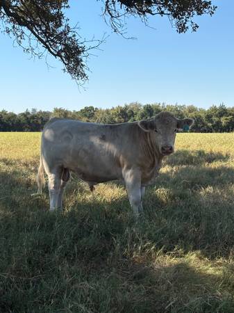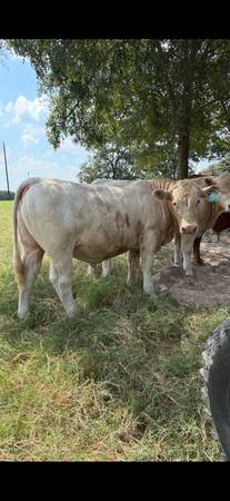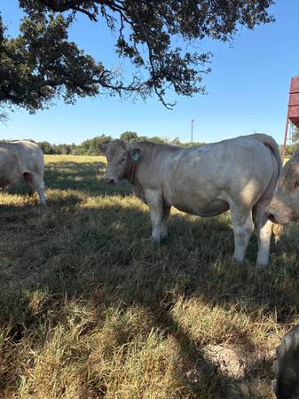 12 Purebred Charolais bulls for sale. Home raised, gentle. Out of registered cows and registered bulls.13-14 months old. Ready for cows in December. Can be registered.