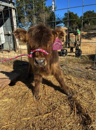 SCM Hazel is a May 2025 Highland heifer out of a mid sized black dam and a dun mid-sized bull. She’s weaned and looking for her next pasture! Started on halter and sweet as pie!