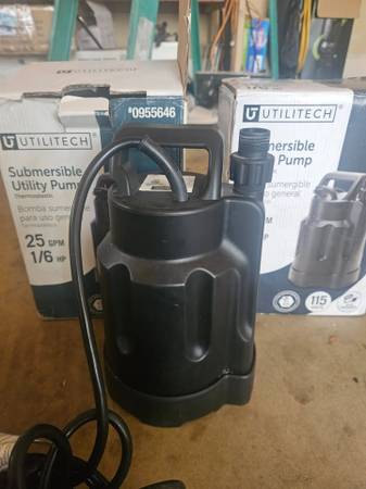 Utilitech Submersible Utility Pump, 1/6HP. 120V Utilitech 1/6-HP 115 -Volt 25-Gallon Thermoplastic Submersible utility pump. These are new pumps that sell at Lowes for $109. I am selling them for...