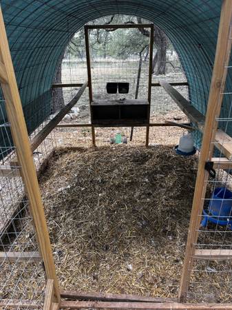 Hoop house for sale! Comes with a chicklifts kit already attached. Each hoop house comes with 15 active layer hens. Mixed breed 1-2 yrs old Two hoop houses available at $850 each or $1,500 for both