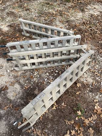 Two folding Aluminum Ramps. Used to load side-by-side, lawn tractor, or other equipment. Light weight, strong.
