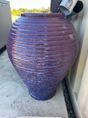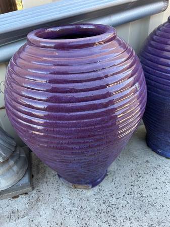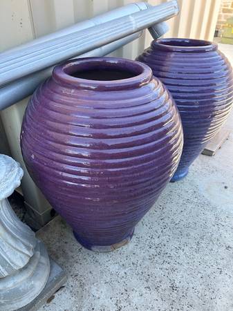 2 Purple Tint Architectural Pots. Indoor or outdoor use. 11" inside diameter. 35" tall. Will load.
