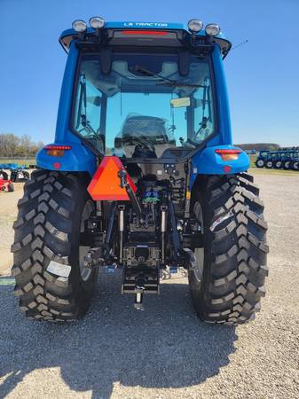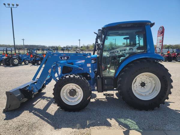 2024 LS MT573CPS tractor with enclosed cab. 73 horsepower diesel engine, EPA Tier 4 Final. Power shuttle transmission with 20 forward and 20 reverse gears. PTO offers 540, 750, and 1000 RPM settings. Three rear and three front hydraulic remotes.