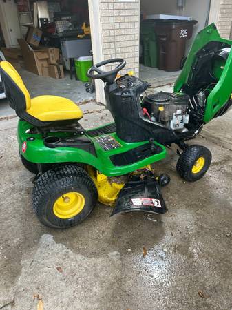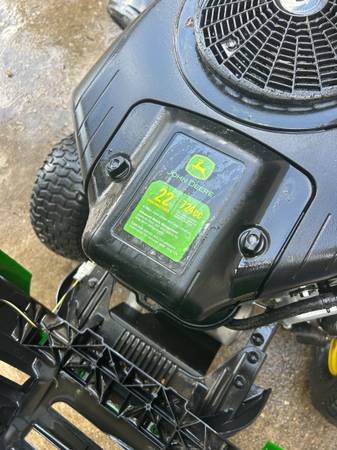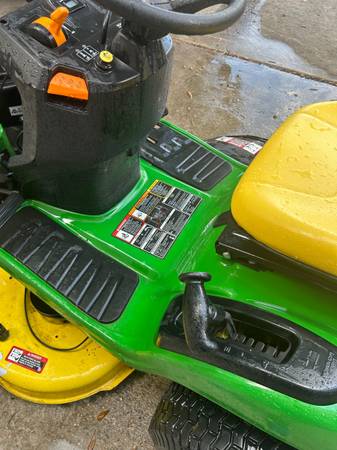 JOHN DEER S120 42 INCH DECK MOWER: 62 HOURS ON THE UNIT: WELL KEPT IN GARAGES & OIL CHANGED TWICE PER YEAR WITH QUICK-CHANGE TWIST ON FILTER. RUNS GREAT, GOOD TOP END, TIRES ARE TEMPERATURE...