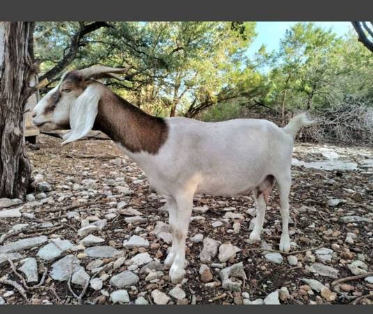 3/4 Nubian 1/4 boer Nanny milk goat . She is 5 years old and very tame I have had her since she was a kid. She eats both pasture and grain. She is full grown and has had 6 kid goats in her life. Since she is a Nubian goat she is quite tall. She has been dewormed and has had cd&t vaccine shot in the past.