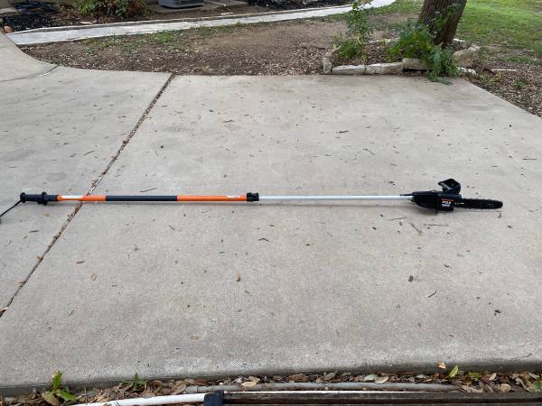 Remington Electric Pole Saw extends your reach overhead up to 15ft. with an adjustable telescoping pole. 8 Amp motor with 10in. low-kickback bar and chain. Tool-less quick change from pole saw to chain saw. Aluminum inner pole for extra strength and control during extended-reach operations.