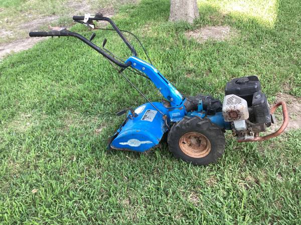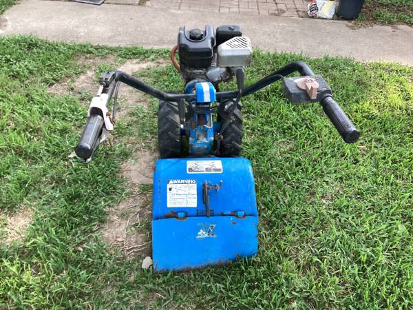 This tiller runs but something is wrong with the clutch. It will not stop when you let go of the clutch handle. You have to pull it into neutral to stop it. There are other attachments that go onto these machines but I only have the tilling attachment. No emails please. Call or text. 979-232-6O58