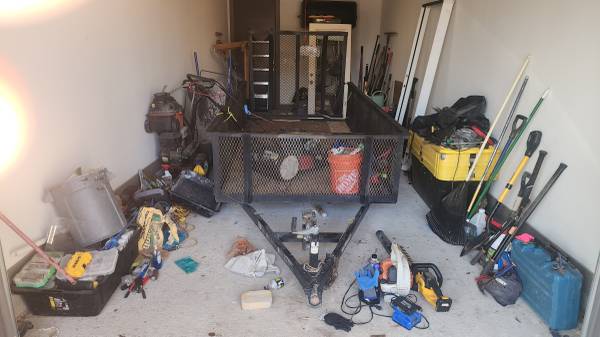 Trailer 6x12 metal simgle axle (3500 lbs) With almost all landscape tools...mower, pressure washer. Metal wheel barrow, tampers, shovels types flat point long, grade rake All others in good shape,...