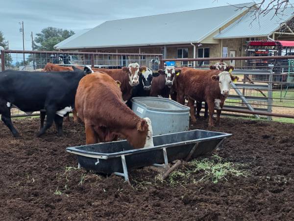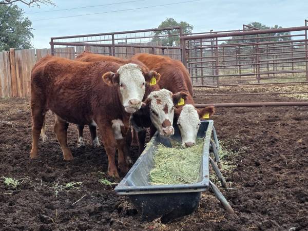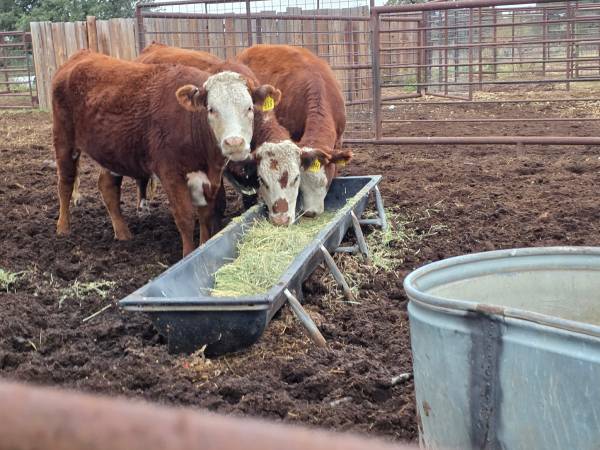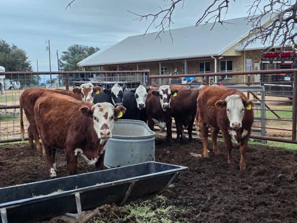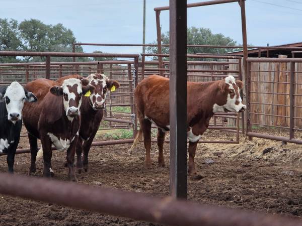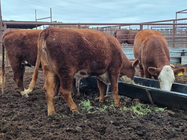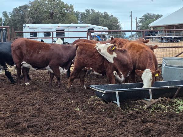 6 beautiful big red motley faced heifers Confirmed bred 4 and 5 months to LBW angus bull. All gentle 2 year olds, weighing 1050 pounds average. Come straight into the pens for feed. Llano, Texas...